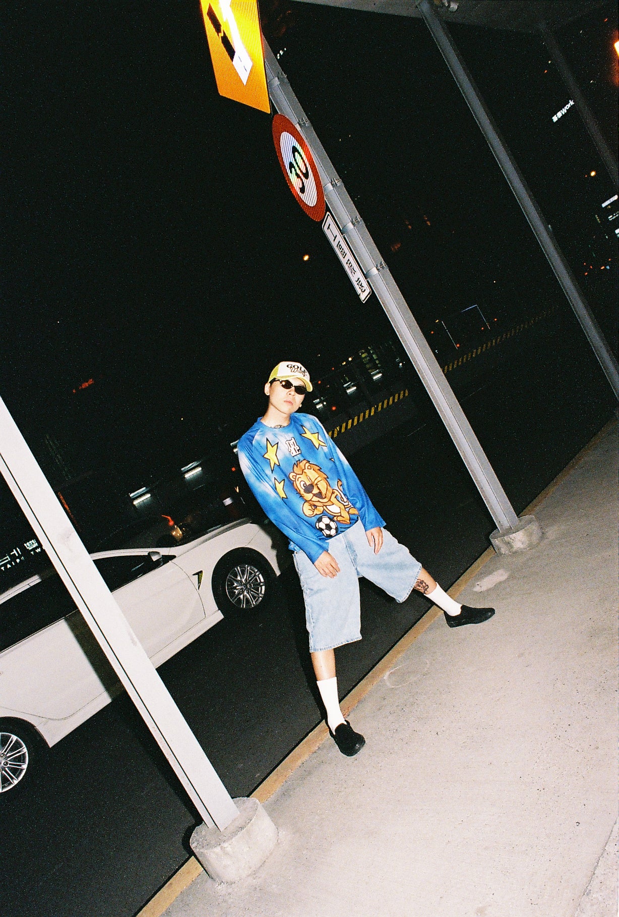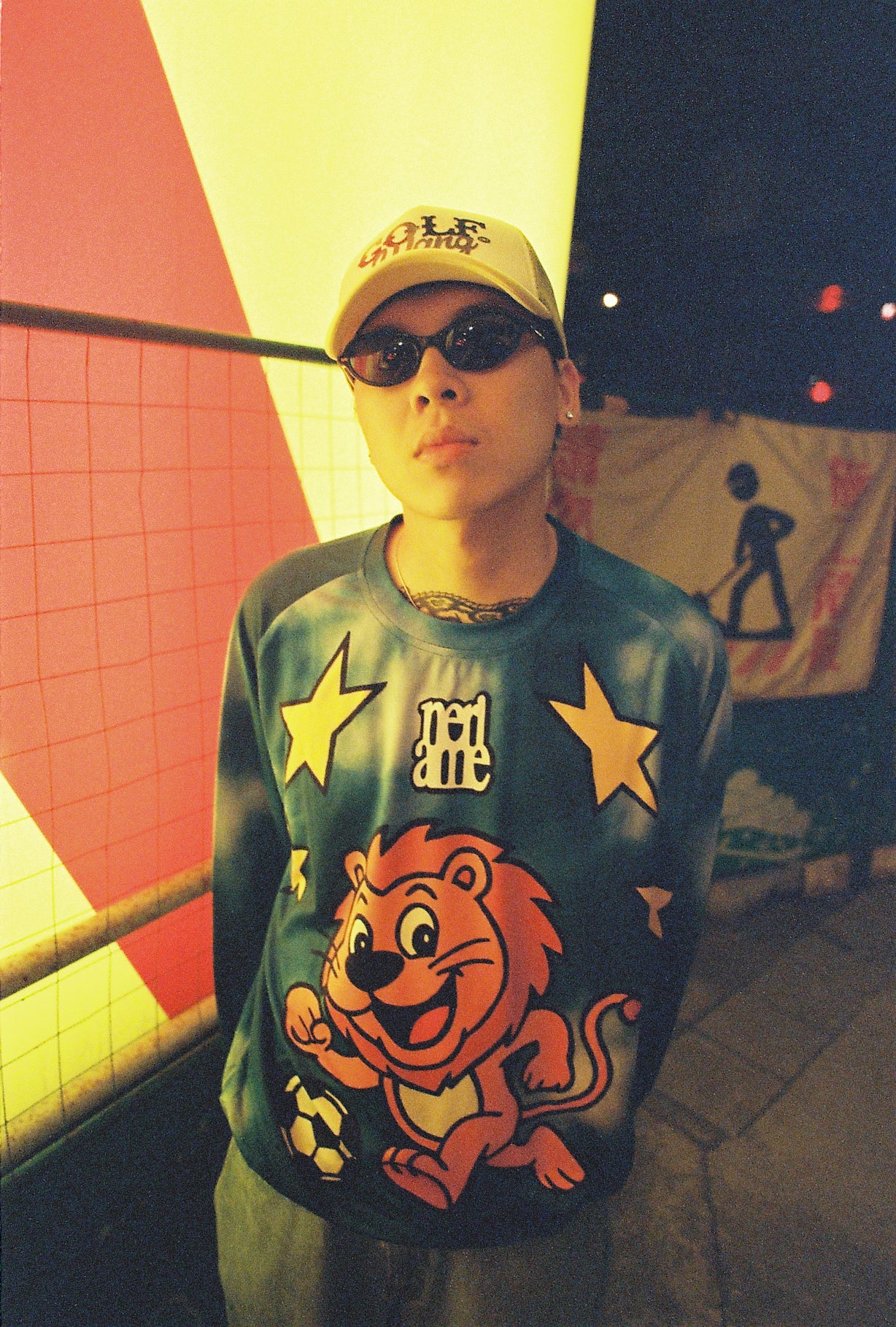 速乾素材を使用したロングスリーブジャージ。すべてのデザインは手描きで仕上げています。サッカーから着想を得ており、背面には「蹴」の文字を入れました。ゆったりとしたシルエットで、裾はドローコードで調整可能です。
