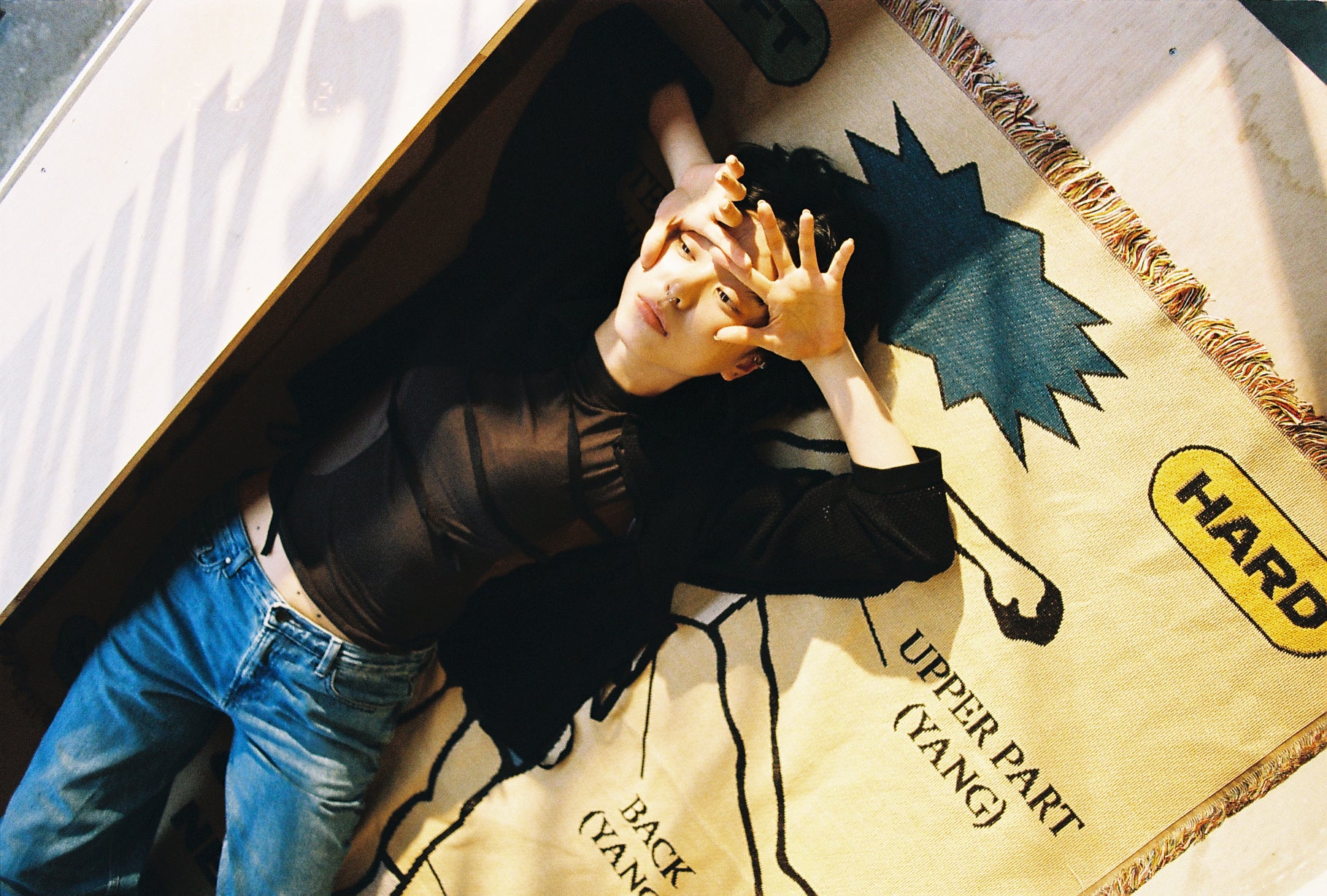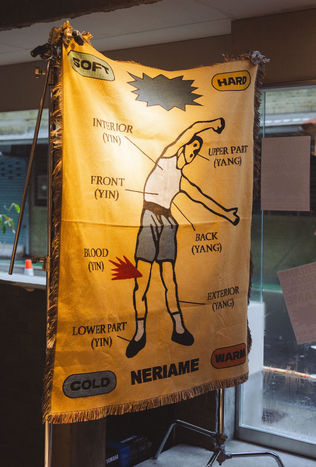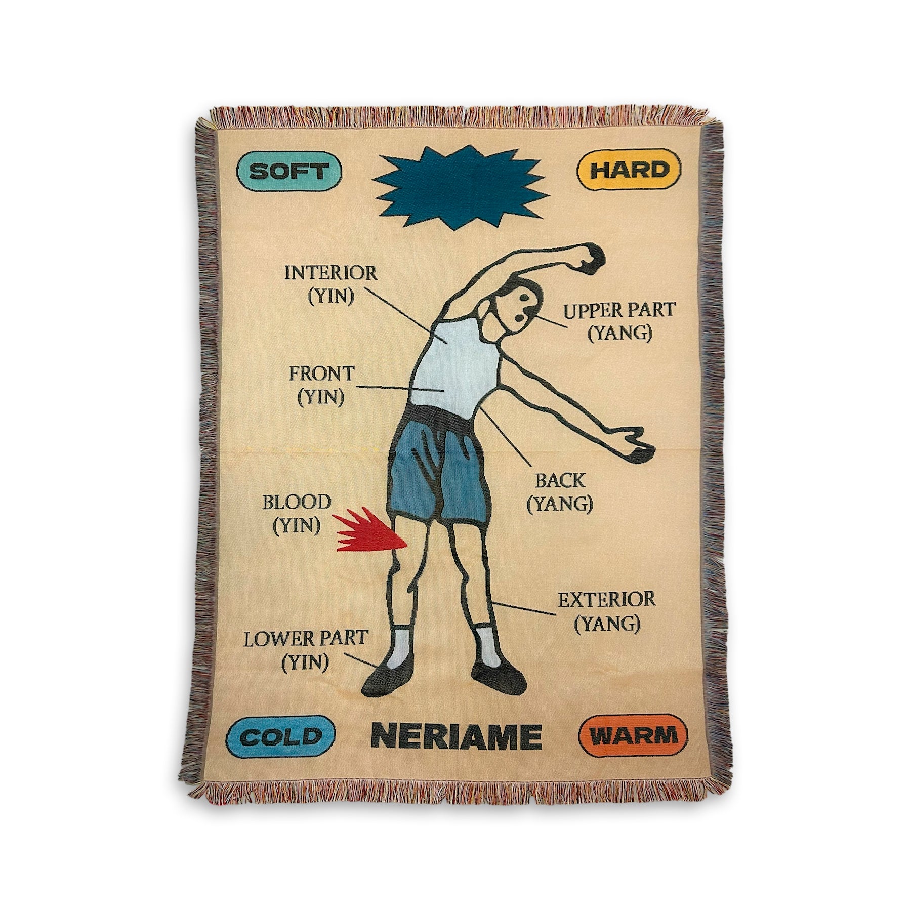 陰陽をテーマにしたグラフィックの大判ブランケット。飾っても良し、公園やキャンプなどで使うのもおすすめです。汚れに強く洗濯機使用可能な素材です。
